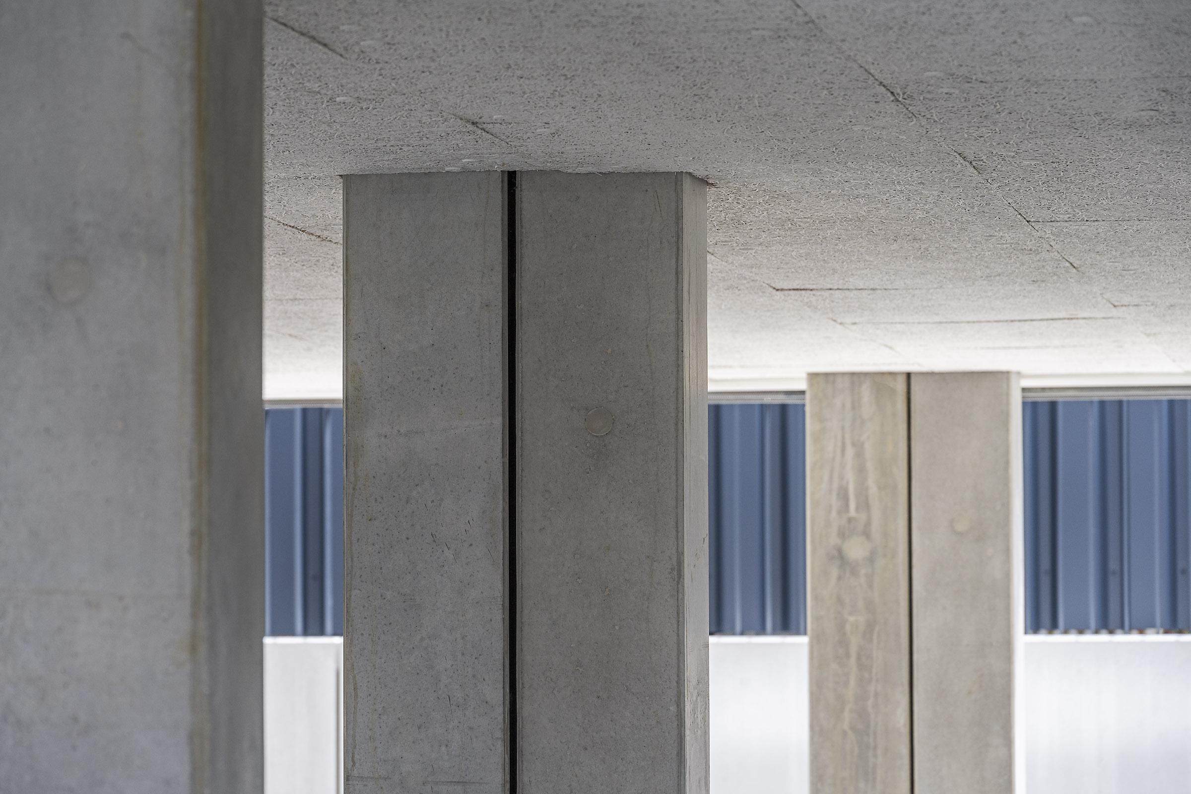 Die hochgedämmte und hinterlüftete Faserzementfassade orientiert sich farblich und strukturell an dem bestehenden Bürogebäude der Fa. Eckle, verwendet jedoch eine zeitgemäße Formensprache.